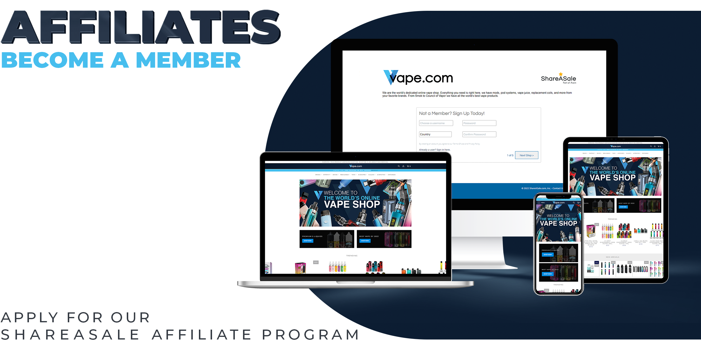 If you would like to make money advertising our Vape.com on your website, we encourage you to apply for our ShareASale affiliate program. This allows you to earn commission for every sale made by users clicking on our website links hosted by you. You'll be provided a wide range of custom-made banners and images, and we're always readily available to make advertisements for you upon request.