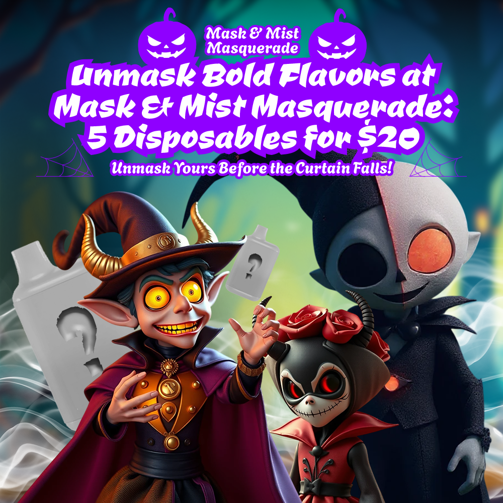 Step into the fog where flavors wear masks of mystery. Unveil your surprise with 5 Disposables for just $20. Which puff hides your perfect match?