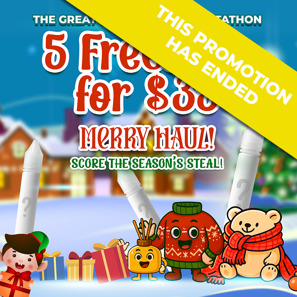 Celebrate big with 7 Freebase E-Juices for only $20! These mystery flavors are popping off like firecrackers—sweet, loud, and unexpected!