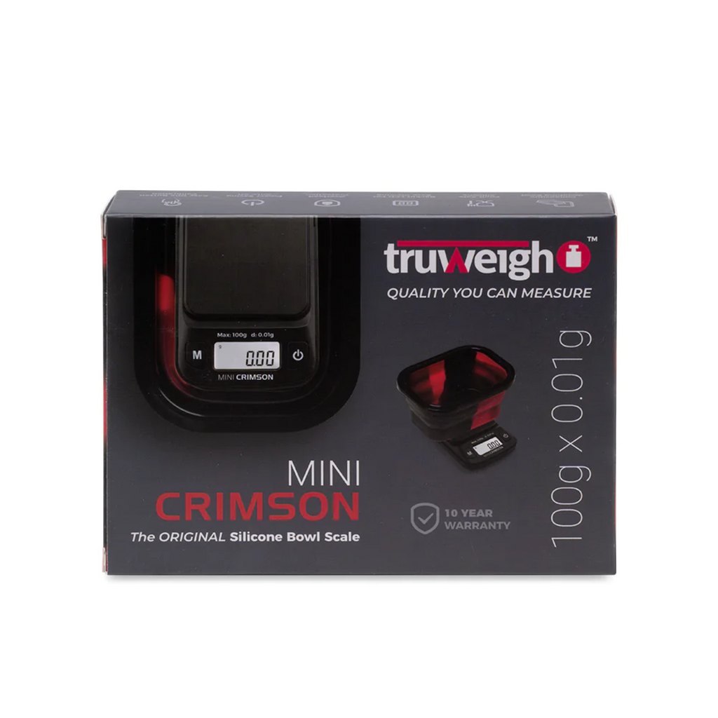 The Truweigh Mini Crimson Scale includes a collapsible silicone bowl and latching cover for incredible versatility. The silicone bowl contains and protects the scale when collapsed, keeping it safe from knocks and bumps. When fully expanded, the bowl provides a comfortably large volume for you to weigh your items in. Results are easy to read from the large LCD screen with back-light.